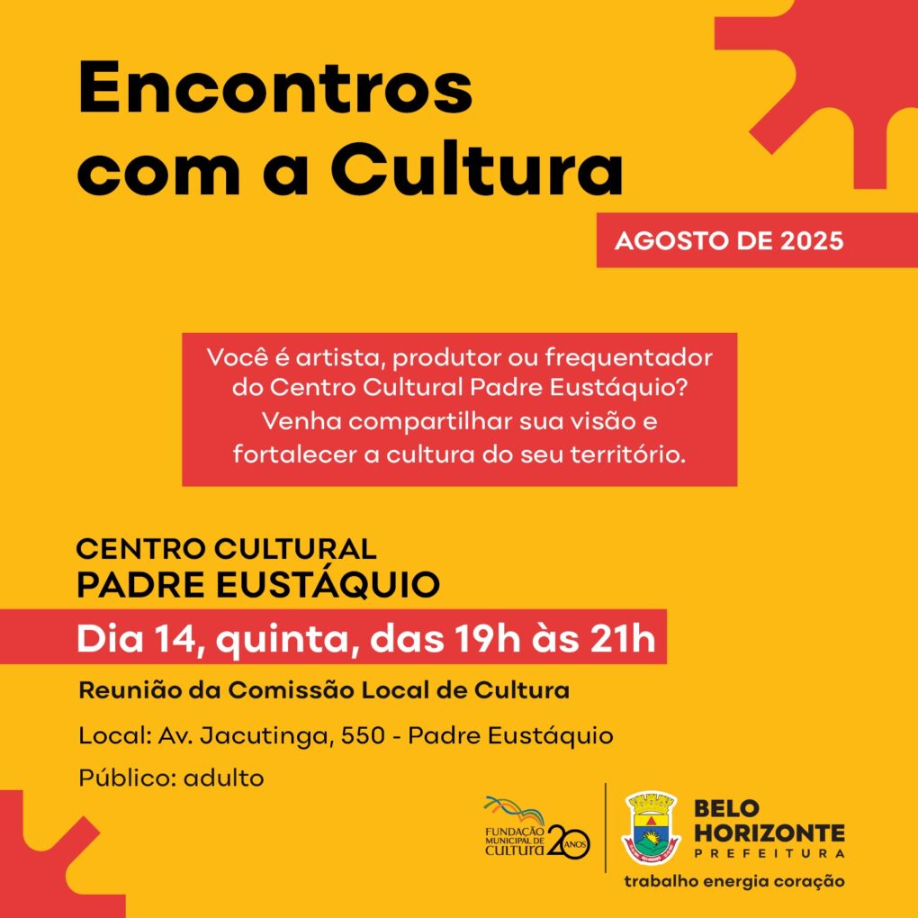Então esse encontro é pra você! Vamos conversar sobre cultura no território, compartilhar ideias e pensar coletivamente as ações do centro cultural. Sua escuta e sua voz fazem a diferença!
