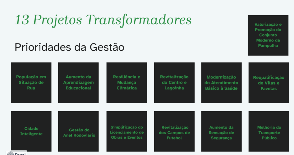 Os Projetos Transformadores traduzem asprioridades da PBH.