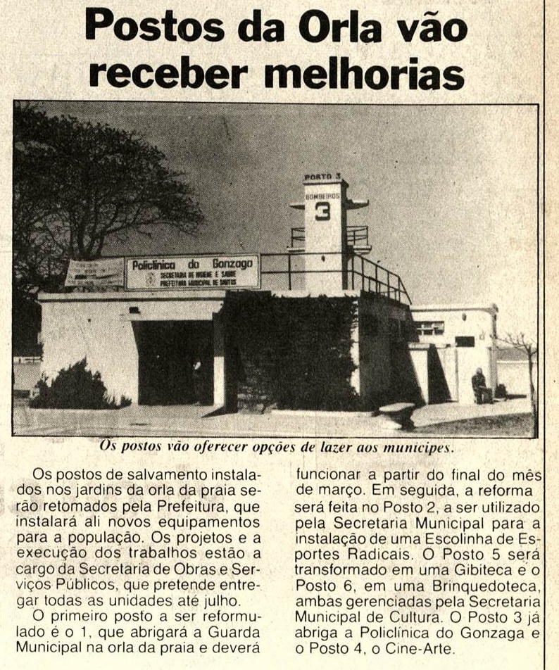 Os postos de salvamento instalados nos jardins da orla da praia srão retomados pela Prefeitura, que instalará ali novos equipamentos para a população. […] O Posto 5 será transformado em uma Gibiteca […].