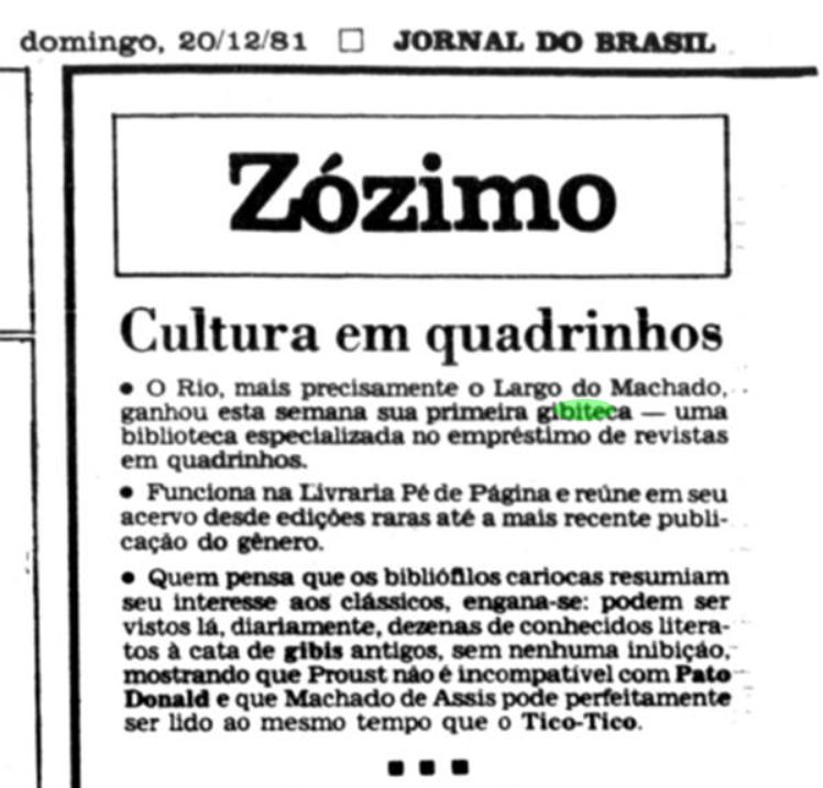Jornal do Brasil – Rio de Janeiro 20 dezembro de 1981 Zózimo