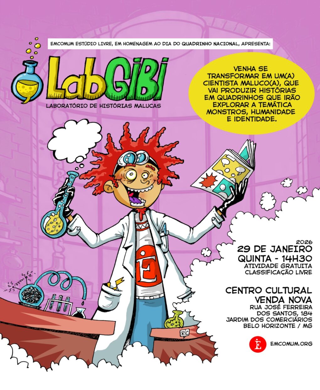 Em comemoração ao Dia do Quadrinho Nacional, o cartunista Ric (Emcomum Estúdio Livre) montará um laboratório para transformar as pessoas em cientistas malucas, que vão produzir histórias experimentais de quadrinhos que irão explorar a temática monstros, humanidade e identidade. Classificação Livre.