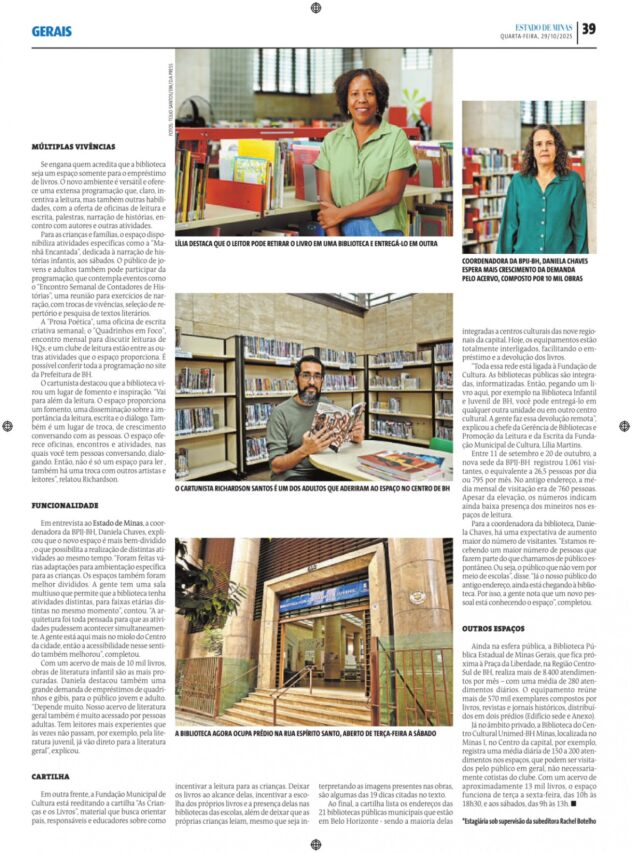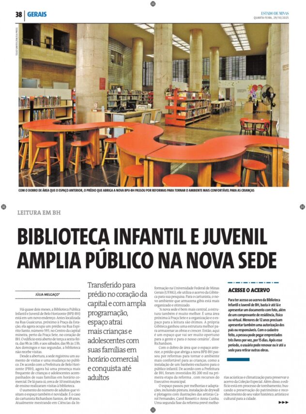 Matéria do Jornal Estado de Minas sobre a nova sede da Biblioteca Infantil e Juvenil de Belo Horizonte
