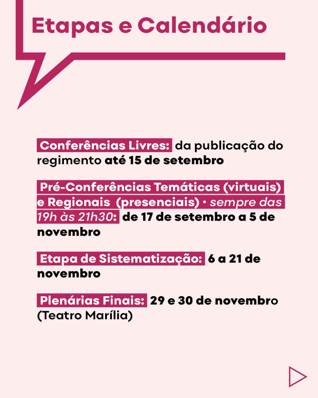 l) viabilização e fortalecimento das instâncias de participação e de controle social para formulação, implementação, monitoramento e acompanhamento das políticas públicas;