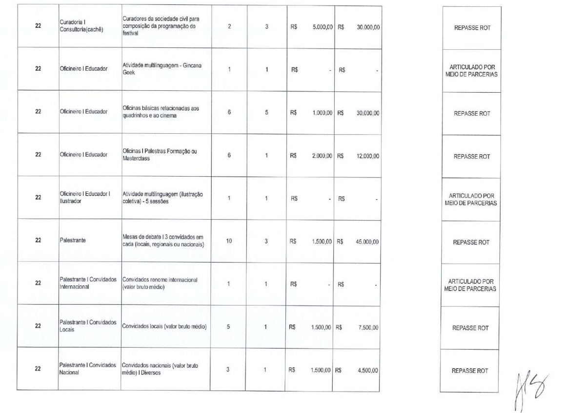 Orçameno do Festival Internacional de Quadrinhos de Belo Horizonte, edição 12, ano 2024.